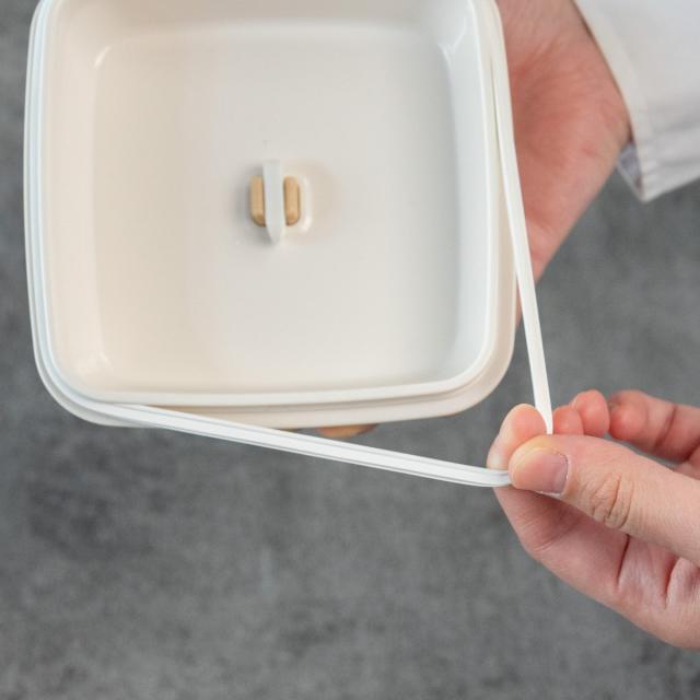 溝の付いたパッキン付きのフタで、汁漏れしにくく、持ち運びも安心です。