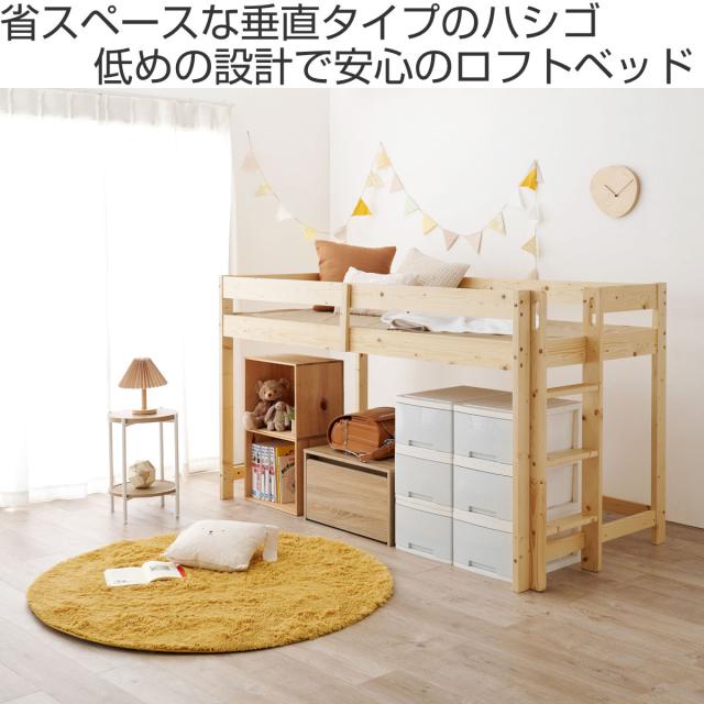 ロフトベッド ロータイプ 高さ120cm すのこ 天然木 パイン材 ( ベッド ロフト 子ども 秘密基地 頑丈 F★★★★ 低ホルマリン 低め 安心 垂直 ハシゴ 省スペース 木製 )