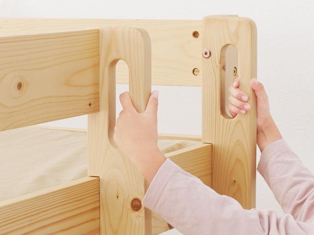 掴みやすい取っ手付きなので上り下りがしやすいです。特に触れることの多い先端は、角を丸く削り、滑らかな形状です。