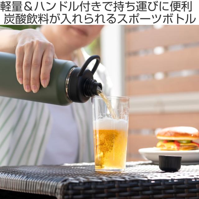 炭酸飲料を入れて持ち運びができるスポーツボトルです。ステンレス製真空二重構造なので外気温を遮断し保冷効果に優れています。軽量でハンドル付きなので持ち運びがラクラクです。指にひっかけたり、カラビナでリュックやバッグに下げたりして、すっきりと持ち運ぶことができます。