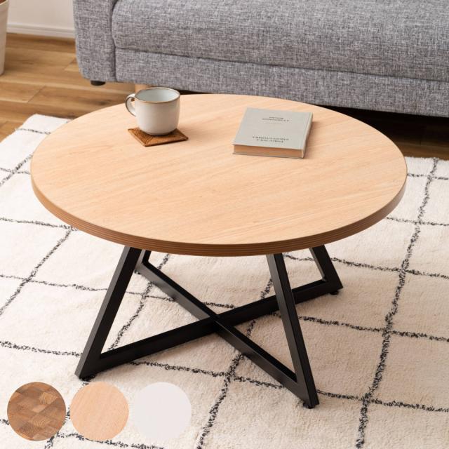 センターテーブル 円型 直径75cm Lサイズ ラウンドテーブルL ( リビングテーブル ローテーブル テーブル 丸 丸テーブル 円形 木目調 スチール脚 )