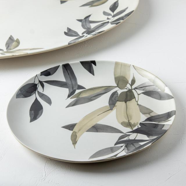 自然な色合いの葉模様デザインが特徴の「BALI LEAVES」シリーズです。無地の食器と重ねたり、シンプルなグラスと組み合わせるなど、テーブルコーディネートを楽しみたい方にもおすすめです。