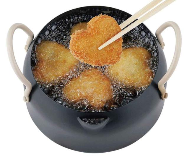 両手で持ちやすく、使い勝手のいいミニフライ鍋です。副菜やお弁当のおかずなどちょっとした一品を作りたい時、一人暮らしの方にも重宝します。ガス火はもちろん、IH調理器などの熱源に対応しております。