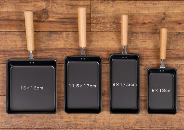 ![]() 卵焼き器 9×13cm | ![]() 卵焼き器 9×17.5cm | ![]() 卵焼き器 11.5×17cm |