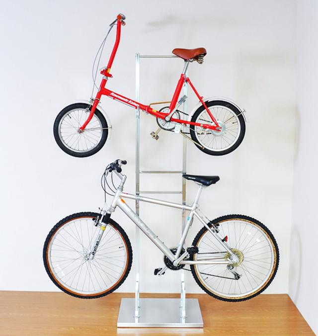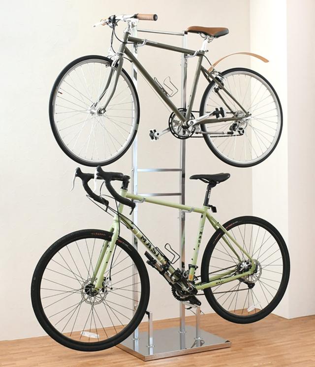 自転車スタンド 2台用 室内用 縦置き ( サイクルスタンド サイクルラック ディスプレイ 2台 日本製 置くだけ 転倒防止 盗難防止 室内 シルバー ホワイト ブラウン 収納 ラック )