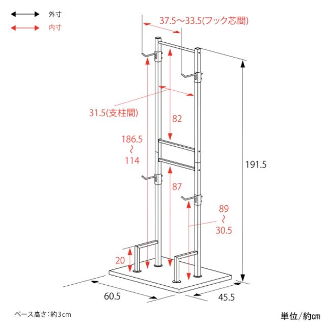 | サイズ | 約 幅60.5×奥行45.5×高さ191.5(cm) |