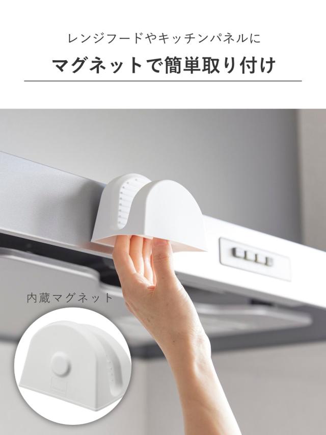 マグネットでレンジフードやマグネットが使えるキッチンパネルに簡単取り付けできます。目に見える位置に置くことで、探す手間が省け、片付けもスムーズになります。