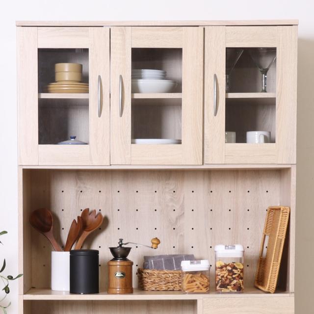 中身が見えるガラス扉なので、どこに何があるのか一目で把握できます。いつも使う食器など、探さず直ぐに取り出せるので料理もスムーズに行えます。