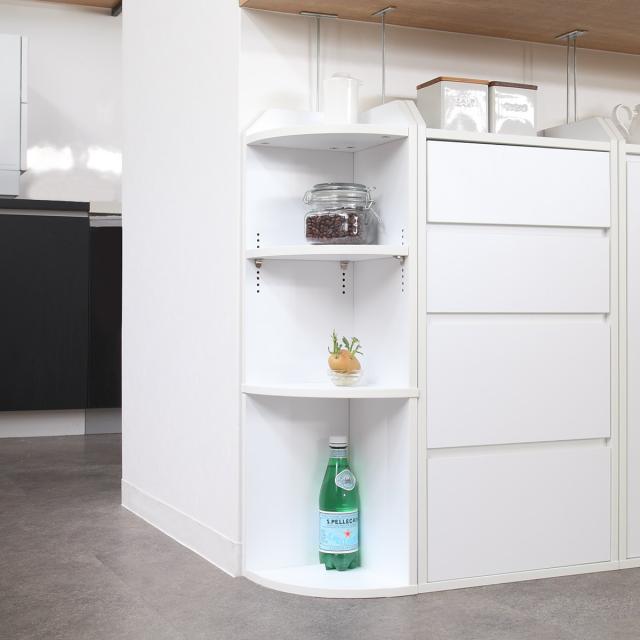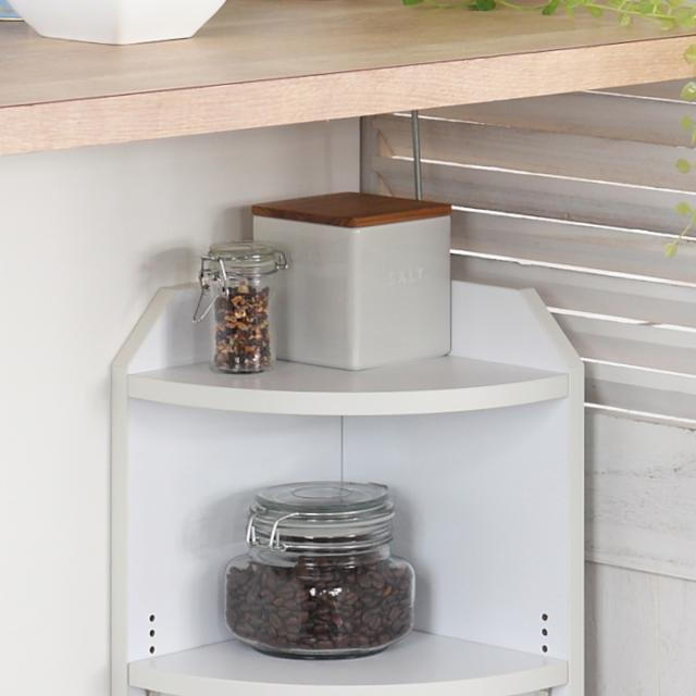 キッチンのカウンター下スペースを有効活用できる収納家具シリーズのコーナーラックです。キッチンやダイニングはもちろん、突っ張り金具を取り外せば、リビングや書斎など場所を選ばず活躍します。たっぷり収納できるのに奥行は約22cmと薄型なので、お部屋をスッキリと片付けることができます。