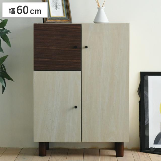キャビネット 開き戸 幅60cm ツートーン 積み重ね対応 ( サイドボード 本棚 ラック 収納棚 木製 扉付き 収納 家具 リビング収納 ツートン おしゃれ 可愛い 大人可愛い 幅60 60cm )