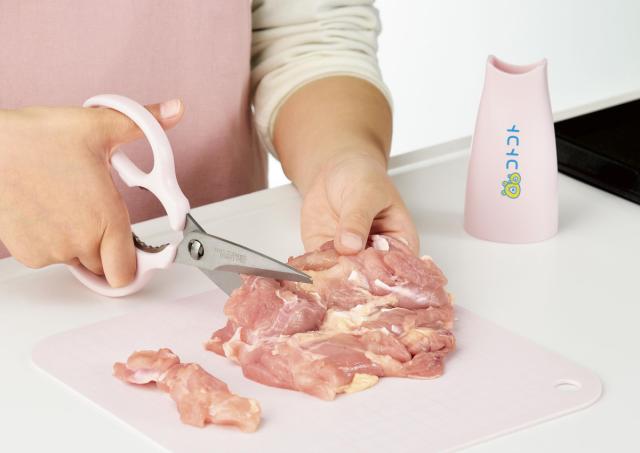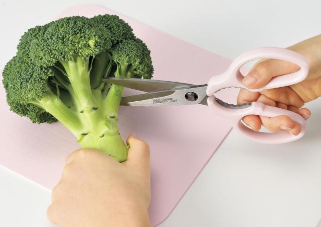 小ぶりなサイズでお子様の小さな手でも扱いやすいキッチンばさみです。野菜を切ったり、お肉をカットしたりと幅広い食材にお使いいただけます。キッチンばさみとしてはもちろん、小さいビンのふた開けも可能です。様々な用途に使えて小回りが利く万能なキッチンばさみです。
