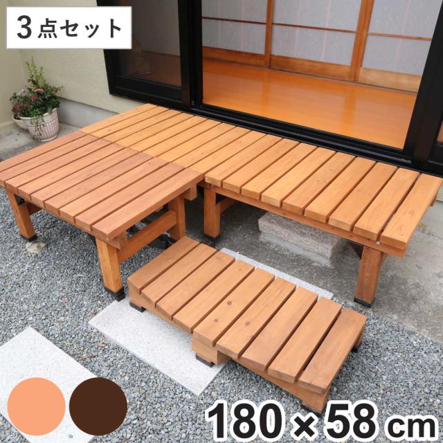 デッキ縁台 180×58 3点セット ウッドデッキ ( ガーデンデッキ 天然木 天然木デッキ DIY 2台 縁台 ぬれ縁 踏み台 掃き出し窓 連結 杉材 木製 バルコニー 庭 エクステリア 外構 簡単 ウッド デッキ )