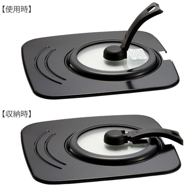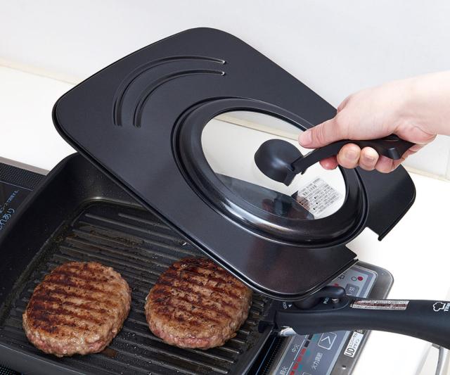 取っ手がそのままスタンドとして使える、自立タイプのフライパン蓋です。調理中もサッと立てて置けるので狭いキッチンでも邪魔になりません。