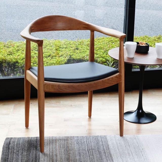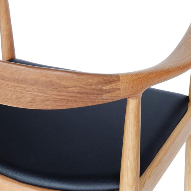 1950年にデザインされたThe Chair(ザ・チェア)は、プロポーションの美しさや掛け心地の良さなど、あらゆる点において最も完成度の高いチェアです。ザ・チェアという名称は、コペンハーゲンの有名なインテリアショップ「デン・パーマネンテ」の役員をしていたオスカー・フィッシャーが1950年に付けたもので、今ではこのチェアを表す一般的な呼称として定着しています。威厳のあるフォルムと素晴らしい掛け心地を持ち「ザ・チェア」と呼ぶにふさわしいチェアということでしょう。