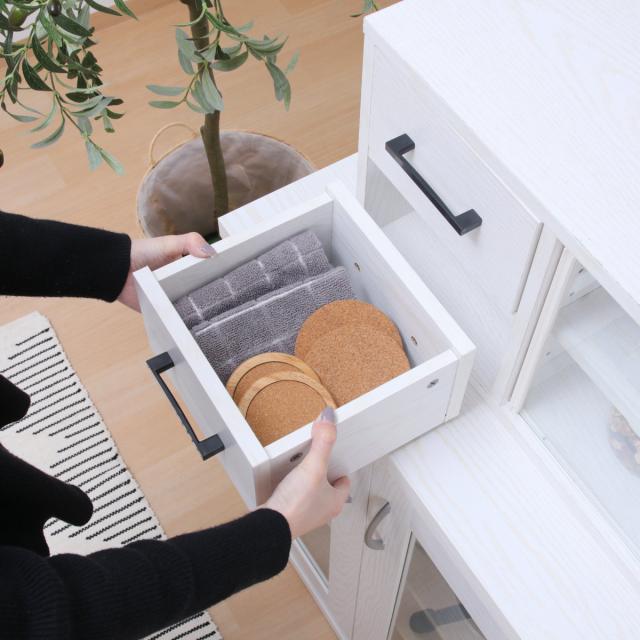 引出しは丸ごと取り外せるので、ごちゃつきがちな小物の整理整頓やお掃除も簡単です。