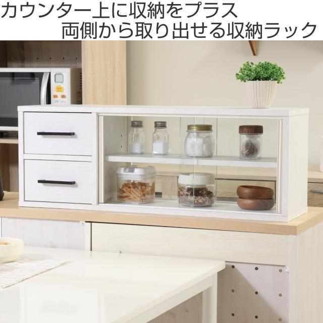 カウンター上 収納ラック 幅80cm オープンキッチン 可動棚 ( ショーケース ガラス扉 対面 ディスプレイ 棚 ブレッドケース キッチン 収納 卓上 引き出し 両面 ラック オーク オークホワイト )