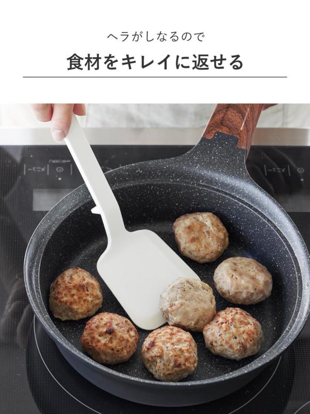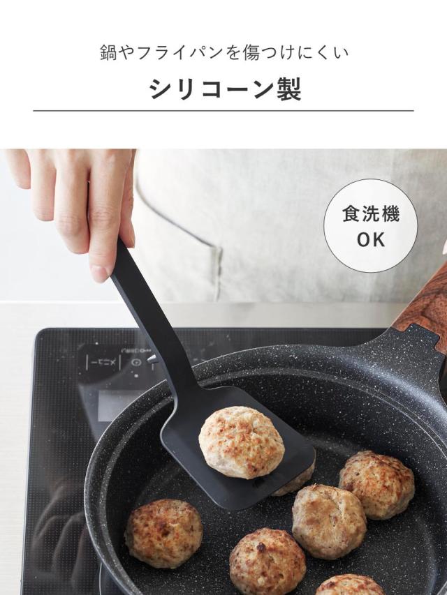 シリコーン製で滑りにくく、熱に強く、弾力性に優れ、鍋・フライパンなどを傷つけません。滑りにくいので、食材をお皿に移す際も安心です。