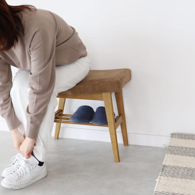 オットマン スツール 高さ44.5cm コーデュロイ PVC Rasic ( 椅子 イス チェア 木製 天然木 座面下 棚 収納 玄関 デスクチェア ダイニング サブチェア )