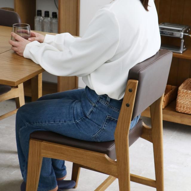 | 材質 | 脚、幕板:天然木(オーク材) 座面、背もたれ:合成皮革(PVC)、ウレタンフォーム |