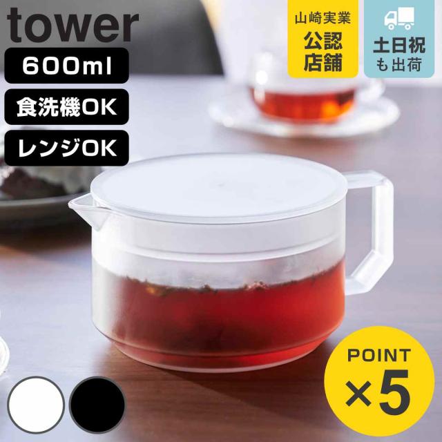 山崎実業 tower ティーポット タワー ( 4903208016728 タワーシリーズ 紅茶ポット 電子レンジ対応 食洗機対応 半透明 一体型 茶葉がこせる フタ 蓋 一体型 茶こし一体型 急須 )