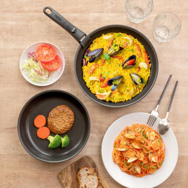 フライパンは深型設計なので、汁気の多い煮込み料理や炊き込み料理もバッチリです。