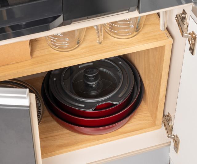 ハンドルを外して重ねることができるので、限られたスペースにもコンパクトに収納できます。