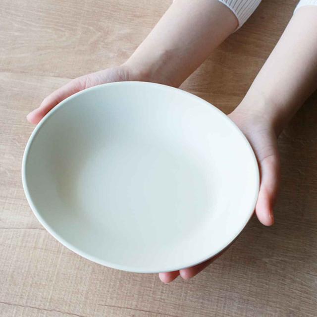 樹脂製で軽くて割れにくく、お子様からシニアまで世代を選ばずに使いやすいボウルです。和食にも洋食にも合わせやすいシンプルなデザインで、パスタはもちろん、煮込み料理やカレーにちょうどいいサイズ感です。