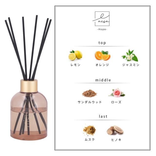 リードディフューザー LACSA ラシサ 100ml ( ディフューザー アロマディフューザー ガラス 半透明 芳香剤 箱入り パッケージ付き ルームフレグランス アロマ フレグランス 香り 寝室 玄関 おしゃれ シンプル インテリア )