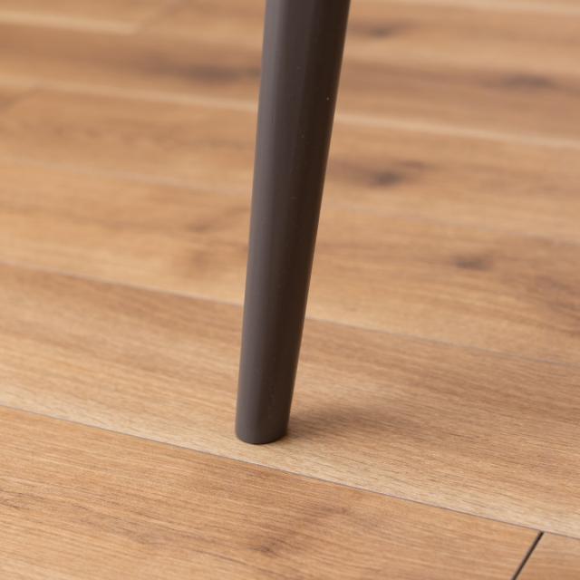 天板と脚で異なる素材を使用しています。天板には合成樹脂化粧繊維板を使用していて、大理石調のモダンな仕上がりです。脚には天然木パイン材を使用し、木目が美しく肌触りが魅力的です。