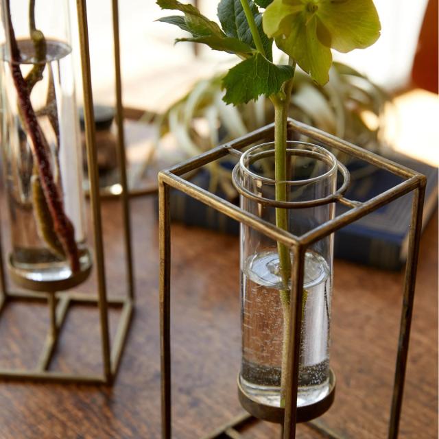 ●アイアン×ガラスシリンダーの組み合わせが個性的なフラワーベースです。
