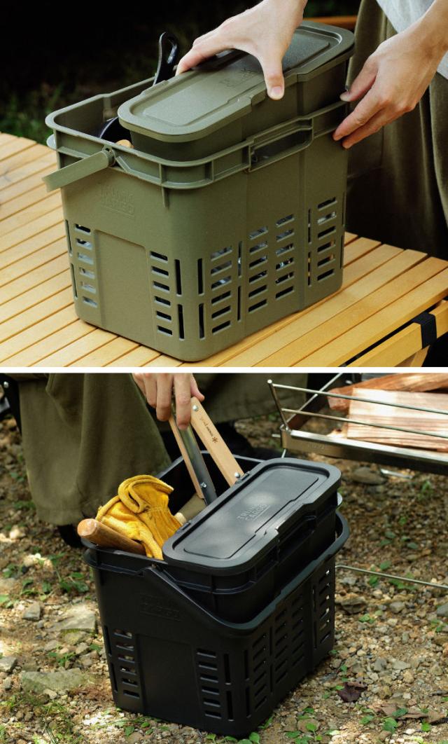 キャンプ用品収納の定番トランクカーゴシリーズから、小物をより収納しやすくするためにできたのがインナーカーゴです。カトラリーや工具などのバラつきがちな小物をひとまとめに収納できるアイテムです。メッシュカーゴの上部に取り付けることもできる構造になっており、他のアイテムと組み合わせることで収納の幅が広がります。アウトドアシーンで活躍するイメージが強いトランクカーゴシリーズのアイテムですが、インテリアに馴染むカラーも展開されているので、外だけでなく家の中での収納シーンにもおすすめの収納アイテムです。