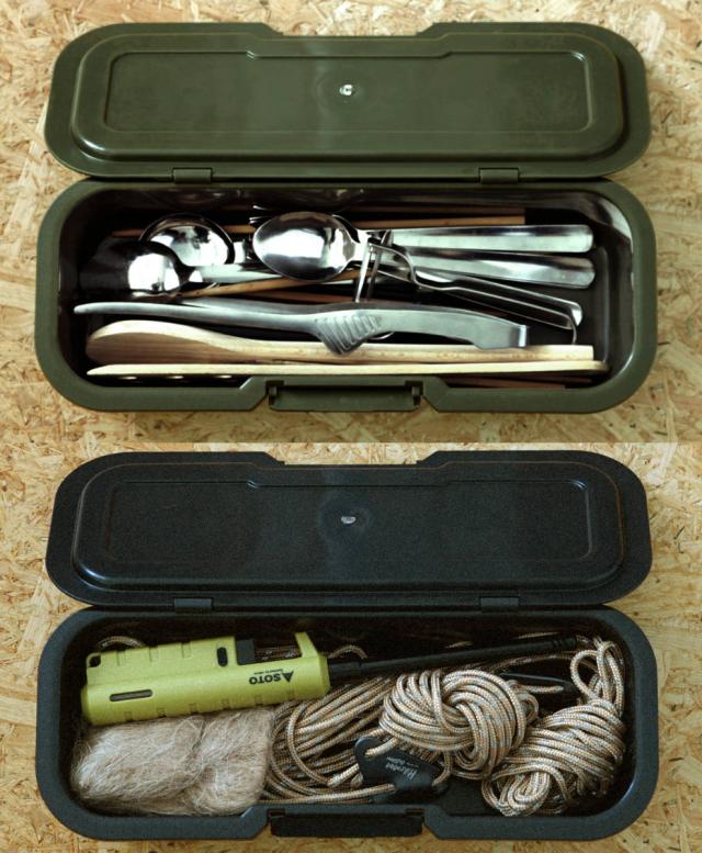 インナーカーゴS-2は、カトラリー類や着火用ライター、ガイロープなどを収納するのに最適なコンパクトなサイズ感です。