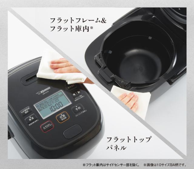 毎日の洗い物は、サッと外せる内ぶたと内釜の2つだけです。お手入れしやすく、毎日の使いやすさにもしっかりこだわりました。 汚れがサッと拭き取れるフラット設計なのも嬉しいポイントです。