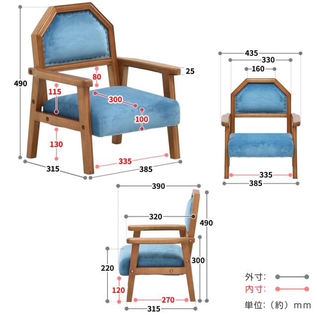 キッズソファ ペットソファ 座面高22cm ベロア生地 シングルソファ BOJAWS ( 1人掛け ソファ レトロ調 アンティーク調 ベロア 高級感 お姫様 スタッズ 木製フレーム ミニサイズ 小さい 子供 キッズ ペット )