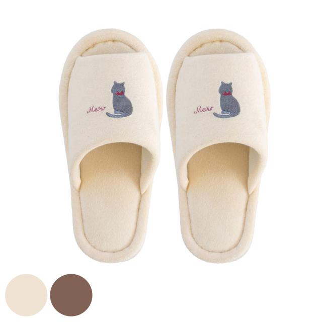 トイレスリッパ ミニョン スリッパ ( トイレ用スリッパ 前開き タオル地 洗濯OK ルームスリッパ トイレ用品 ウォッシャブル ファブリック ねこ アイボリー ブラウン )