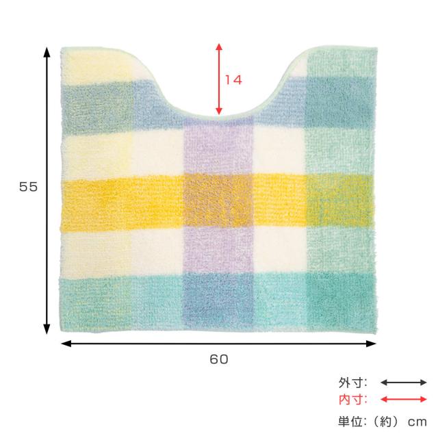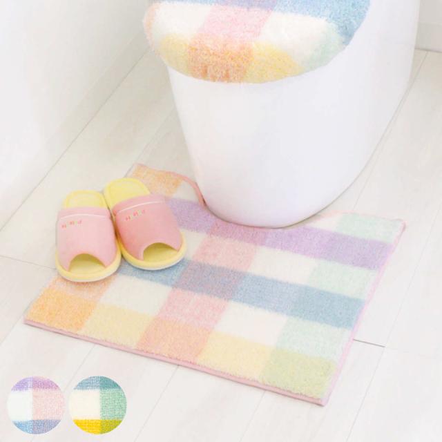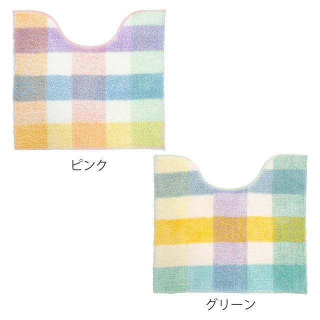 トイレマット パレット 約55×60cm ミドルトイレマット ( トイレ マット 足元マット ミドル 滑り止め 洗濯OK トイレタリー すべり止め 丸洗い 55×60 チェック柄 ピンク グリーン )