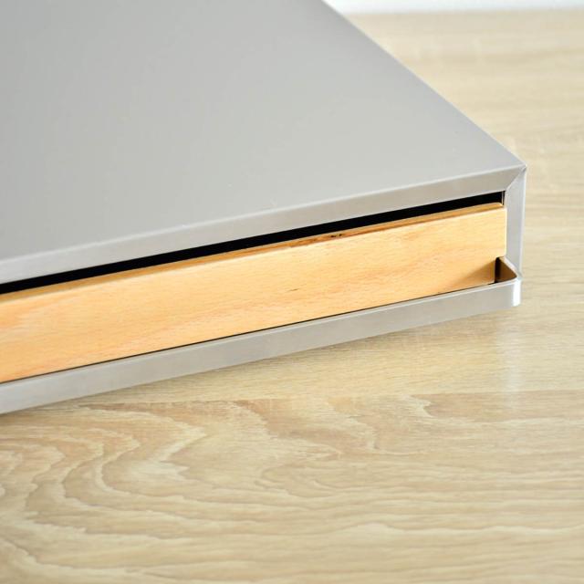 | 材質 | 本体・スライドテーブル:ステンレス(SUS430) 取手:ステンレス(SUS304) 内部フレーム:スチール(クロムメッキ) 前面板:ブナ天然木積層合板(芯材スギ天然木)※新潟県南魚沼産の主伐材を使用 |