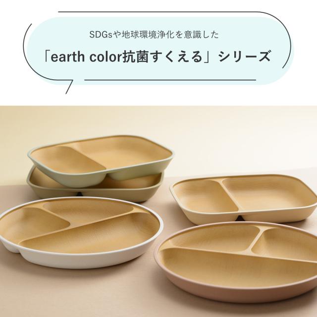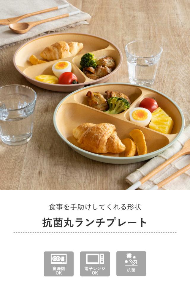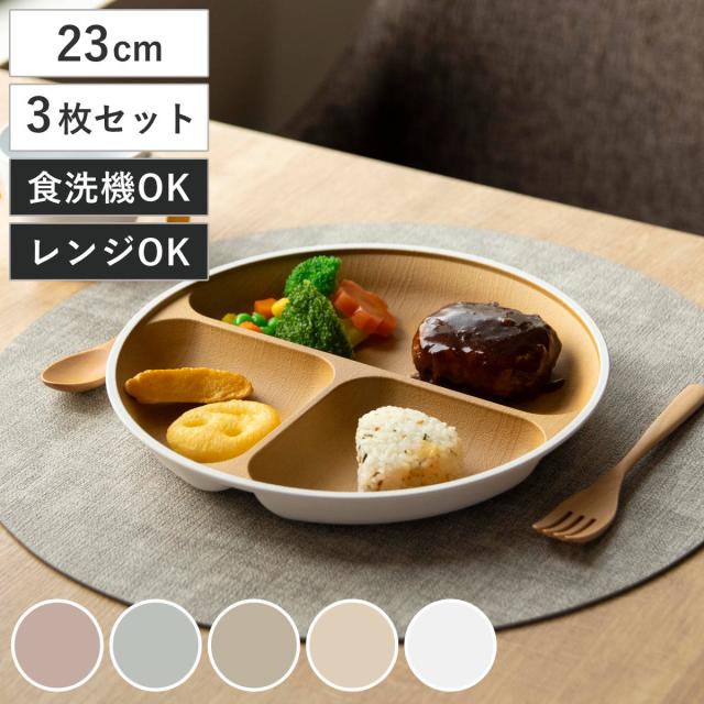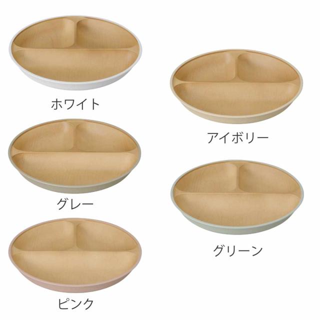 ランチプレート 23cm earth color 抗菌 すくえる 丸 ( 電子レンジ対応 食洗機対応 日本製 プラスチック 仕切り皿 丸皿 3つ仕切り おしゃれ かわいい 軽い 割れにくい シンプル 木目調 子ども 介護 すくいやすい 子供 )