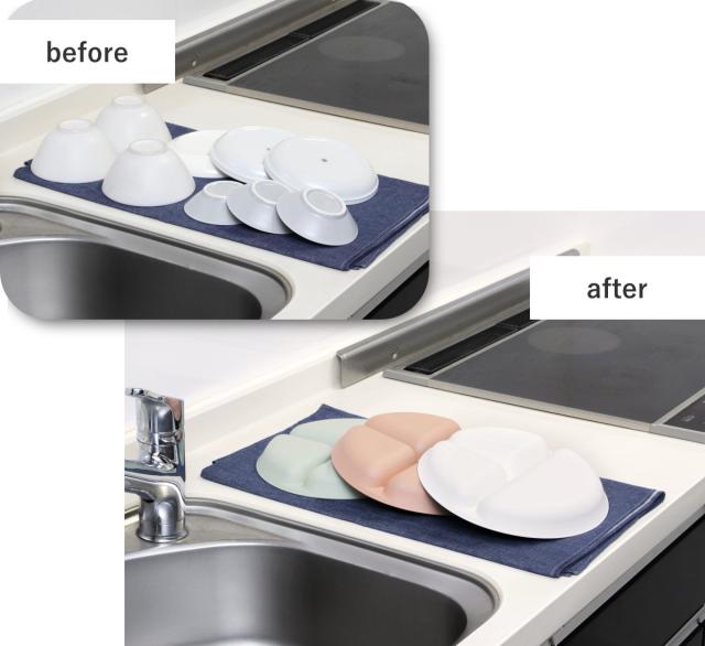 主食からおかずまでひとつのプレートに盛り付けできるので、洗い物はこれ一つ。毎日の家事をちょっと楽にしてくれます。