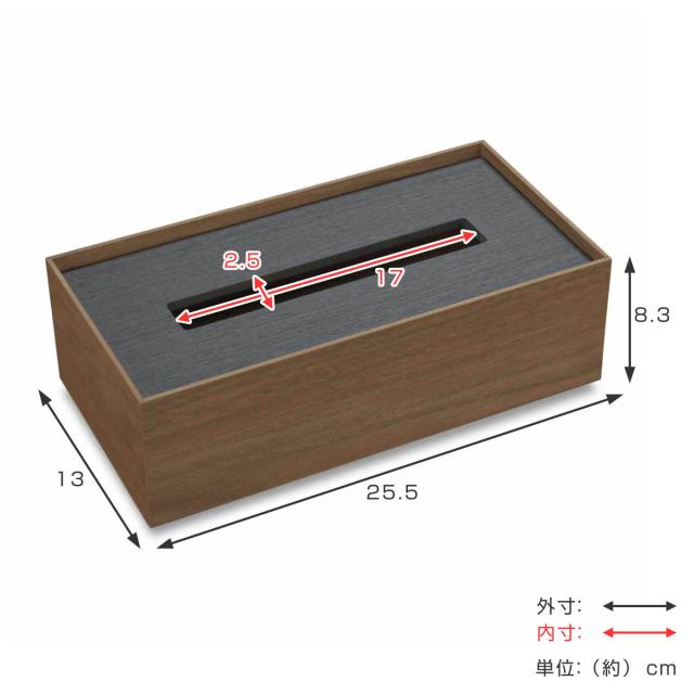 ボックスティッシュ、ソフトパックティッシュのどちらにも対応したサイズです。取り出し口が広いので、キッチンペーパーやペーパータオルを入れての使用も可能です。