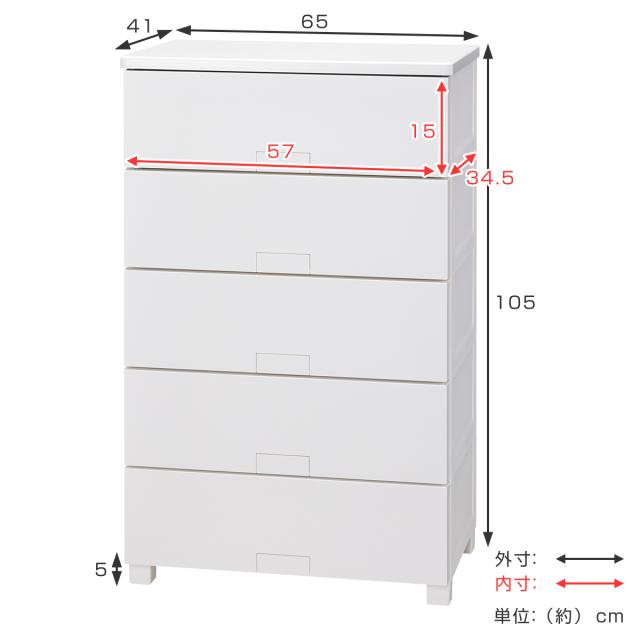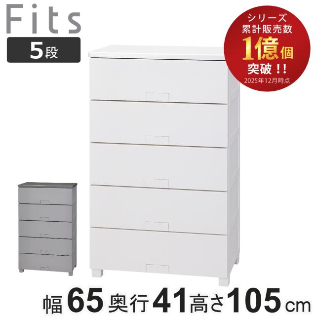 チェスト フィッツチェスト フルフラット 6505 Fits 幅65×奥行41×高さ105cm 5段 ( タンス 引き出し 収納 衣類収納 完成品 プラスチック 引き出しロック フィッツ 衣装ケース リビング収納 収納ケース 洋タンス ストッパー付き )