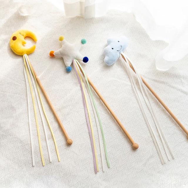 星と航空宇宙からインスピレーションを得た、星空がモチーフになっている猫じゃらしです。月、雲、星どれも愛嬌たっぷりで飾っているだけでもかわいいインテリアになります♪かわいいマスコットにカラフルなリボンがなびき、見ているだけで楽しくなる猫じゃらしは猫ちゃんも大喜び間違いなしです。