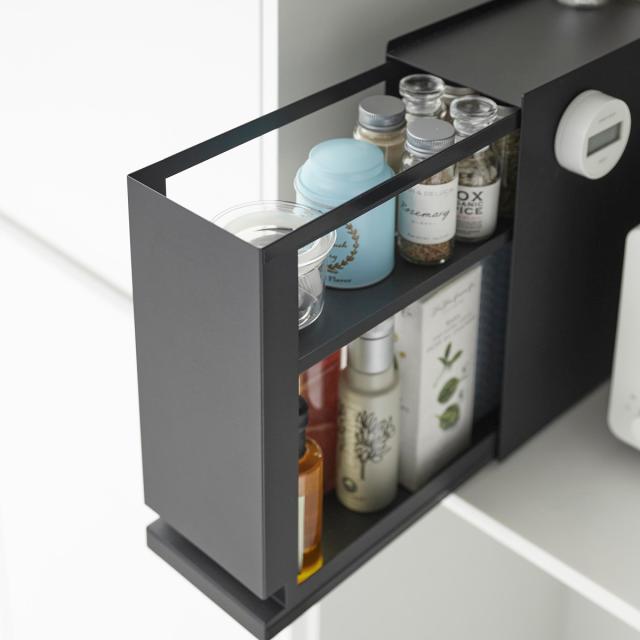 スリムで場所を選ばず使える、隠せる引き出し収納です。玄関では衣類クリーナーや消臭スプレー、鍵などを一括収納できます。ヘアースプレーやワックス、歯ブラシ類の収納として洗面所への設置や、キッチンでカップボードに設置し調味料収納としてもおすすめです。