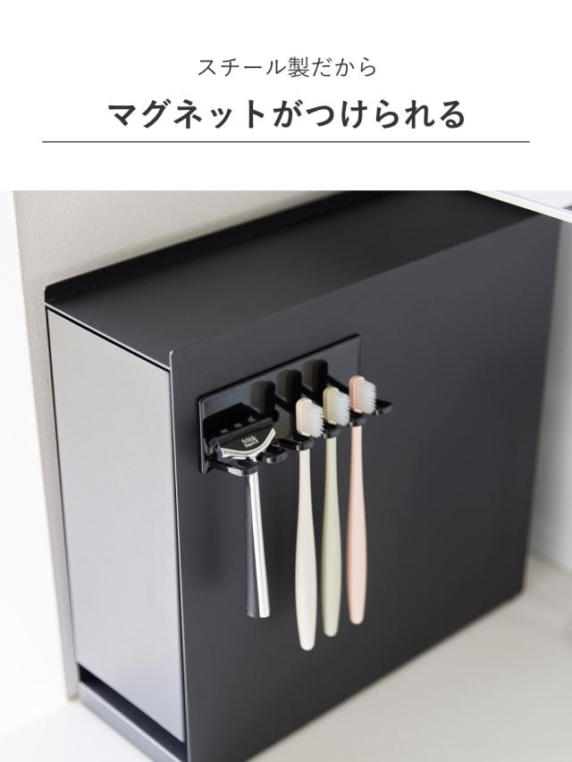 スチール製なので、側面に別売のマグネット製品を取り付けてアレンジすることができます。歯ブラシホルダーやフック、タイマーなどを設置するのもおすすめです。