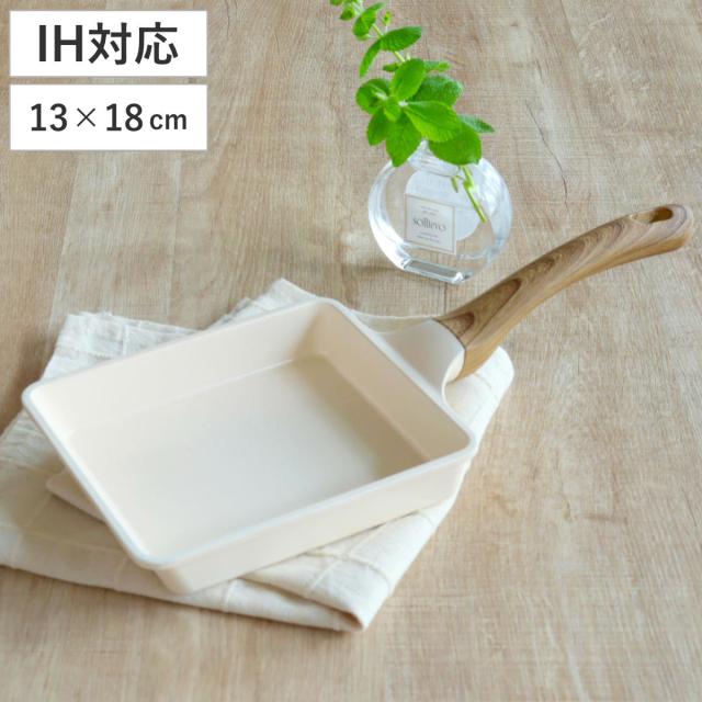 卵焼き器 13×18cm IH対応 HANAKO セラミック製 ( ガス火対応 セラミックフライパン エッグパン ハナコ ホワイト 玉子焼き器 朝食 弁当 弁当作り セラミックコーティング 木目調ハンドル こびりつきにくい おしゃれ 調理器具 白 )