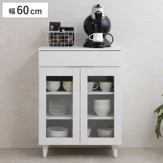 キッチンカウンター 幅60cm ガラス扉 ミニカップボード ホワイトリヴ ( Whiteliv カウンター 食器棚 カップボード 可動棚 組み合わせ キッチン収納 ホワイト 引き出し シンプル )