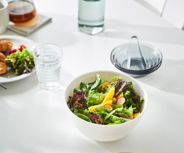 電子レンジで加熱できるので蒸し野菜や下ごしらえに便利です。そのまま食卓に出せるスッキリとしたデザインで洗い物を減らすことができます。調理をしてから食器として使えるボウルは幅広く活用できます。