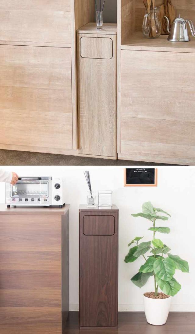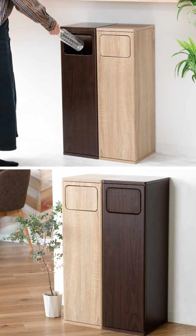 プッシュ式扉で毎日快適に使える木目調のゴミ箱