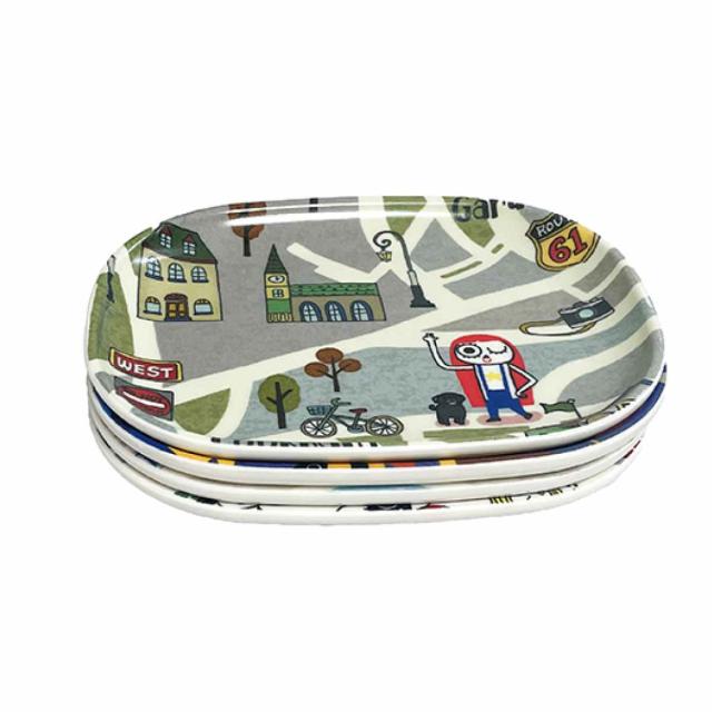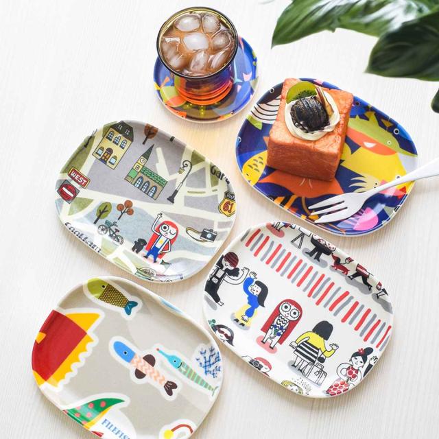 かわいいイラストの布貼り加工が施されたトレイ