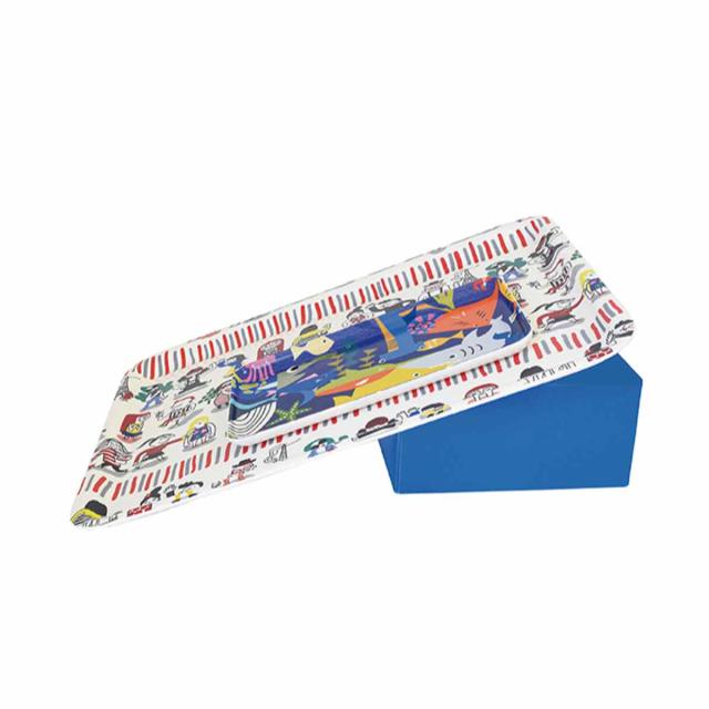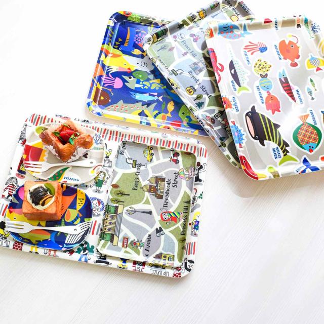 ●かわいいイラストの布貼り加工が施されたトレイです。